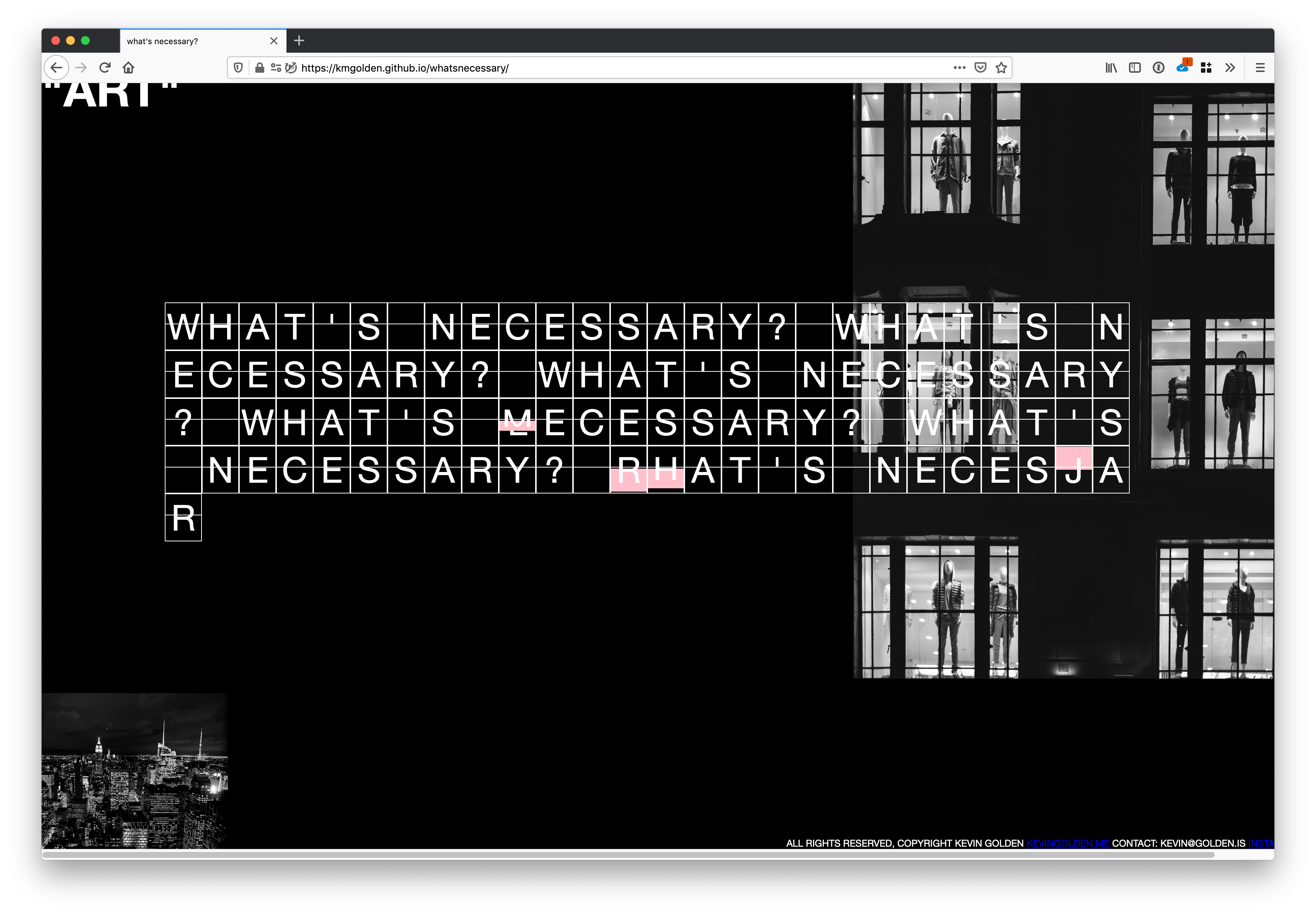 This is an archive of my work. I explore the intersection between media, art, and technology as an interactive creative director and an artist. © 2021, All Rights Reserved. DM me for reuse or sale.